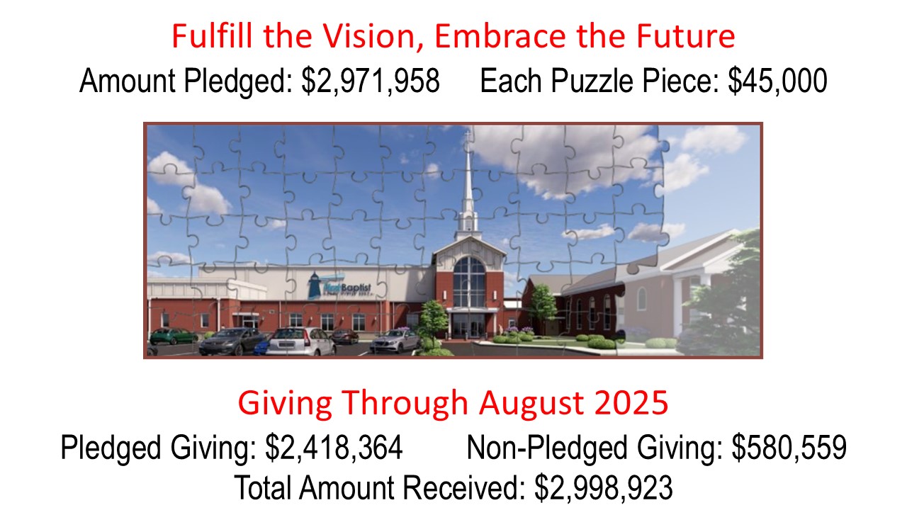These are exciting days. Let us prayerfully seek God’s will. With His help, we will Embrace the Future and Fulfill the Vision!